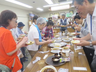 武庫川遊歩道散策と食品工場の報告 ![]() 試食会場 コスモス食品前 武庫川沿いの「桜」は落葉になっているものが多かったが、川沿いの田園風景・少し遠くに見える山・林の紅葉が美しかった。 食品会社での混雑緩和のため、第一陣・第二陣に別れ移動し、見学しました。 工場内では全員が「ぜんざい」を、ご馳走になりました。展示即売会では好きな商品を選び、最後に 一つお土産を頂きました。少し得な気分になったのは私だけではなかったと思います。これからも参加者に喜ばれるコースを企画します。 (リーダー談) |