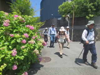 あじさいウオークの報告 ![]() 二軒茶屋付近 森林植物園でのお昼 森林植物園来園記念 熱中症警戒アラートは出ていませんでしたが、朝から気温も上がり暑い1日でした。 出発してから二軒茶屋までは休憩する場所がありませんでしたが、二軒茶屋から学習の森や森林植物園まで は比較的日影が多く歩きやすかったです。 森林植物園に到着後はフリーウオークとして植物園内を堪能して頂きました。多種類のあじさいがあり自然に心を癒すことができましたね。 谷上駅に向かう参加者の方は森林植物園(正門)に再集合し、山田道を下り神鉄/谷上駅に向かいました。 暑い1日でしたが、お疲れ様でした。 健康に気をつけてウオークを、今後も楽しんでください。 |