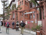 8年前に、その一回目に訪れた“深江文化村”の一邸が既になく、時間の経過を感じざるを得ませんでした。 一方、訪問した六カ所の近代建築のうち、実に五ケ所の建物が“登録有形文化財”と言うハイレベルな環境でした。 まずは「重信医院」。今でも医院として使われているので静かに横目で見ながらとおり過ぎました。 次の「旧山邑家住宅」ですが、時間の関係で入口で引き返しましたが、参加者からは中まで見たかったとのお言葉を頂きました。ホント申し訳ございませんでした。 芦屋仏教会館、芦屋警察署、旧芦屋電話局、旧芦屋市立図書館を巡りましたが、芦屋警察のミミズクの彫刻は云われないと気が付きませんね。 蔦で覆われた旧芦屋市立図書館の手前に訪れた打出公園は、村上春樹さんのデビュー作に登場する「猿の檻(おり)のある公園」として有名ですが、最近リニューアルされて檻は無くなっていました。 |